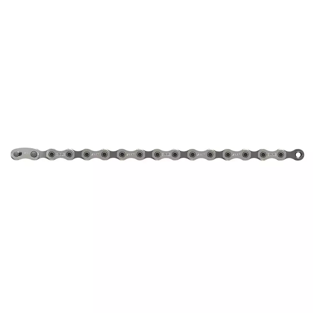 La cadena SRAM NX Eagle 12 V posee eslabón PowerLock que prolonga la vida útil de la cadena. Además el tallado Flow Link específico de las transmisiones Eagle (placas internas redondeadas, sin aristas) se ha diseñado buscado suavidad de funcionamiento y durabilidad en conjunto con el casete y plato Sync-X 2.